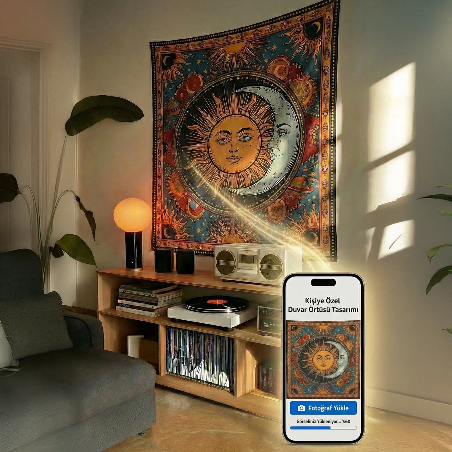 Duvar Örtüleri için duvarda iz bırakmayan çift taraflı bantlarla birlikte gönderim yapıyoruz Tablolar ağır yapısı nedeniyle duvara sabitlenerek kullanılmasını öneriyoruz